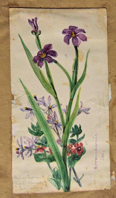 Scott, Captain Andrew. Pride of India, Bermudiana Indigenous Wild Flowers. c. April 1857. watercolour. 3 x 6 inches. The flowers and plants that the author would always remember on these islands for his scrapbook. |
